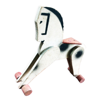 Joli petit cheval en bois à tirer des années 50. La patine est merveilleuse.