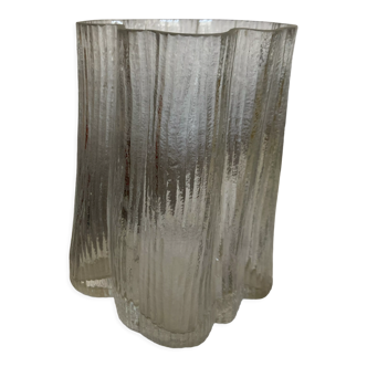 Grand vase sculpture modèle senlis mouvementé en cristal satiné decoré de feuilles en creux. Créé par marc lalique 1900/1977, fils de rené lalique. Signé lalique france.