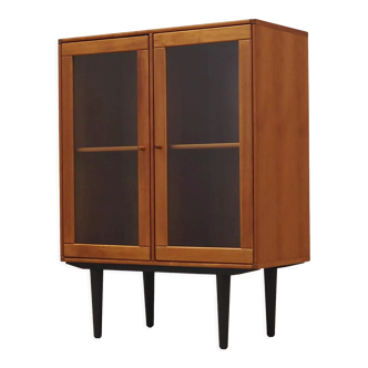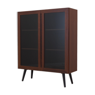 Le cabinet d'exposition a été fabriqué dans les années 1970 au Danemark. Le cadre est recouvert de placage en acajou. Le meuble repose sur une base en bois. La surface a été rénovée. L'intérieur comprend deux étagères pratiques et réglables en hauteur. Le cabinet d'exposition a un design classique avec des portes à charnières, permettant d'accéder à l'ensemble de l'intérieur. Clé incluse. État: La surface du meuble a été rafraîchie. Des rayures et des bosses mineures sont visibles. Nous montrons toujours tout signe d'usure significatif sur les photos. Le produit est prêt à être utilisé immédiatement. *Pour des raisons de sécurité, les étagères peuvent être retirées pour le transport. L'assemblage ne devrait pas poser de problème. Cependant, si vous avez des doutes, veuillez nous contacter et nous vous enverrons une vidéo d'instruction. Données techniques. Hauteur: 137 cm. Largeur: 90 cm. Profondeur: 35 cm.