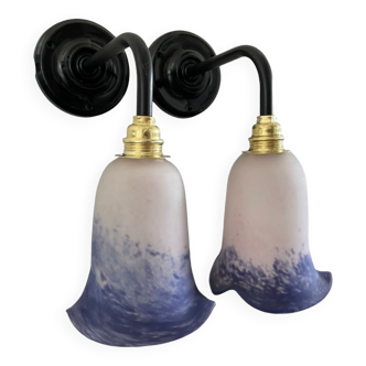 Applique murale col de cygne porcelaine céramique tulipe verre opaline blanche