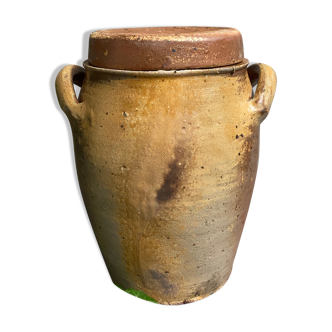 Grand pot en céramique brune émaillée, Belgique, années 1800.