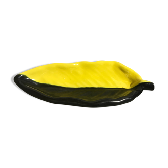 Superbe feuille bicolore en céramique signée années 70. En excellent état. Envoi rapide et soigné. Possibilité d'envois groupés - plus économique et plus écologique !.