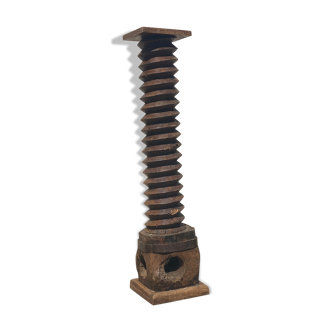 Vis de pressoir des années 1940 montée en sellette. Elle est en bois massif de très bonne qualité. Idéal en bout de canapé ou table d’appoint. Les vis de pressoir se trouvaient autrefois dans les moulins. En très bon état et indémodable. Hauteur: 55cm.