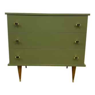 Commode vintage entièrement refaite en vert basque, poignées en laiton massif.