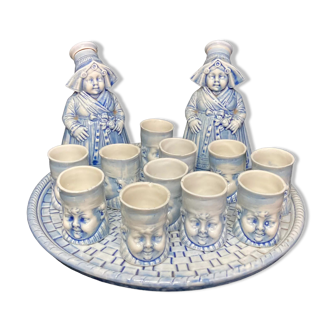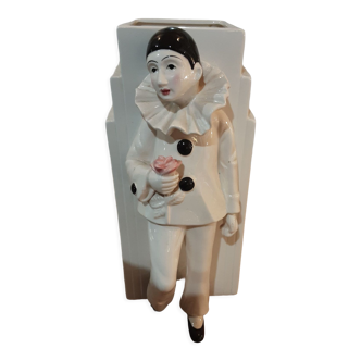 Ancien présentoir à sucettes. Pierrot gourmand. Céramique émaillée. 9x20 cm pour 22 cm de haut. Bon état. Pour 24 sucettes.