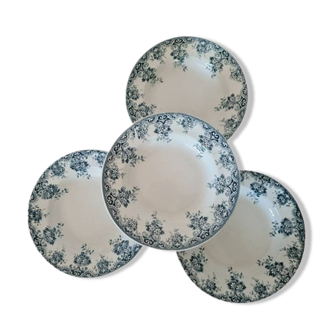 6 assiettes creuses en terre de fer violette, Sarreguemines U&C service "Géranium", 19ème siècle