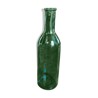 Petit vase en verre transparent de couleur verte, en forme de bouteille. En parfait état, il donnera à vos tables, étagères ou meubles sur lequel vous le poserez un petit air vintage charmant. Dimensions: d7 X h20. Diamètre du col: 3, 5.