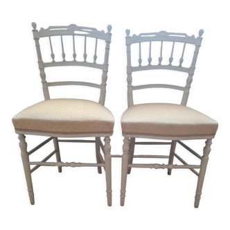 Adorable paire de chaises napoléon III avec une douce et surprenante couleur vert amande. La peinture écaillée par le temps (patine wabi sabi) donne un charme fou à l'ensemble!.