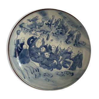 Plateau en cuivre émaillé à décor asiatique représentant des personnes entrain de discuter et un jeune homme dans un arbre. Bon état. On note de légères rayures d’usage et de légers manques d’émail sur le rebord du plateau, en haut à droite et en bas à gauche. Les couleurs sont très vives. Travail du début du 20ème siècle. Dimensions - Poids: 352 grammes. Carré: 19.4 centimètres. Hauteur: 2.4 centimètres. Vous pouvez consulter nos autres annonces et également suivre notre boutique pour être informé des nouveautés...